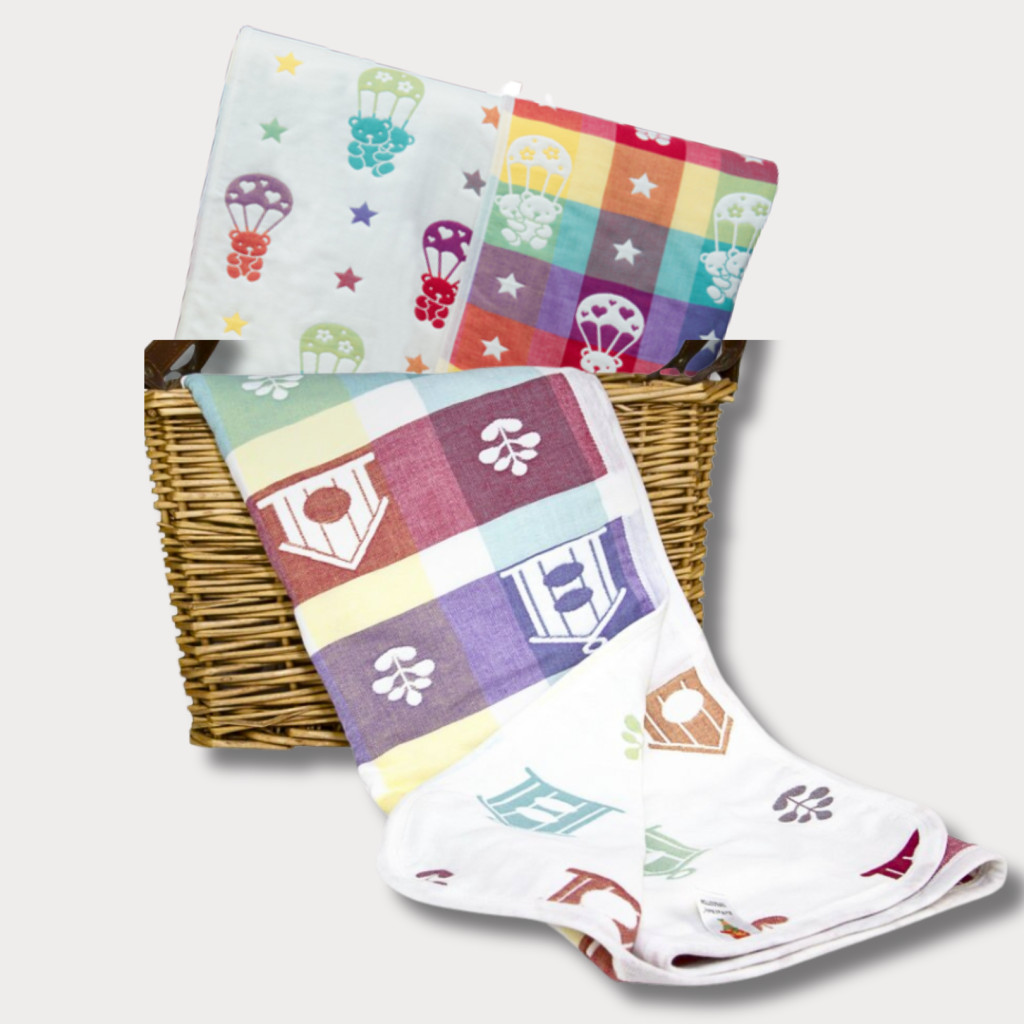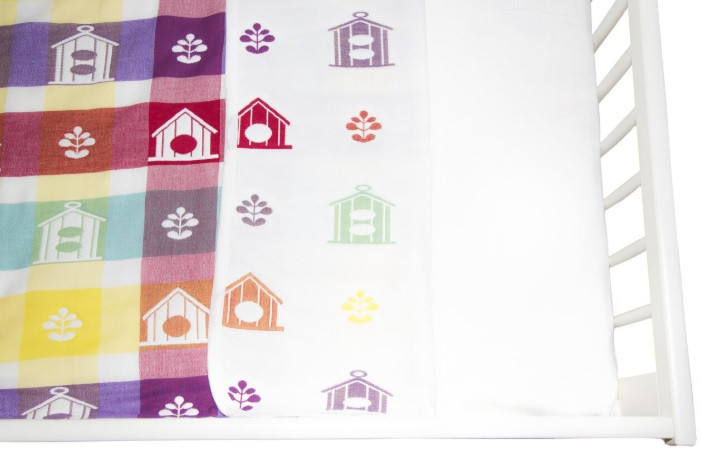 A jacquard technika és a 100% muszlin pamut kombinációja ideális a babák hálóruhához és takaróihoz, egész évben használható